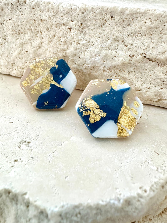 Hex Studs - Navy/Tan
