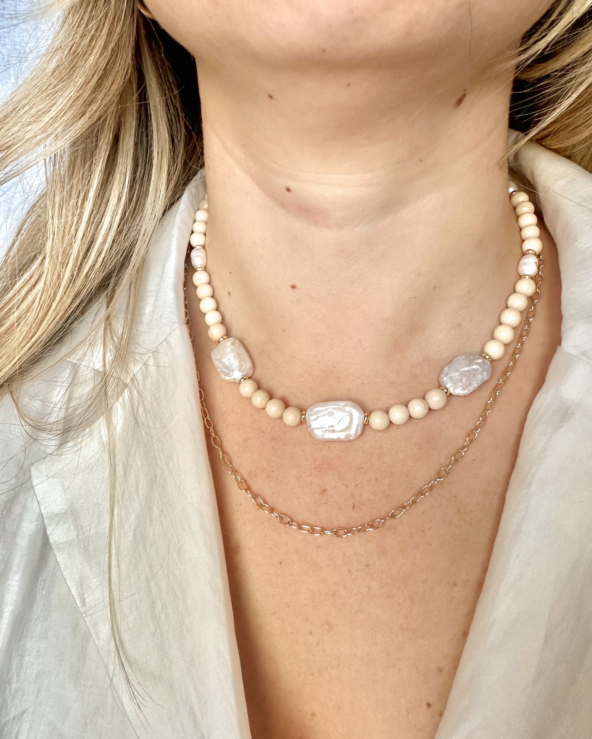 Layer the Cannes Necklace with Allegra or Positano for a delicate layered look, or pair beneath gemstone styles such as Sahara or Valencia.