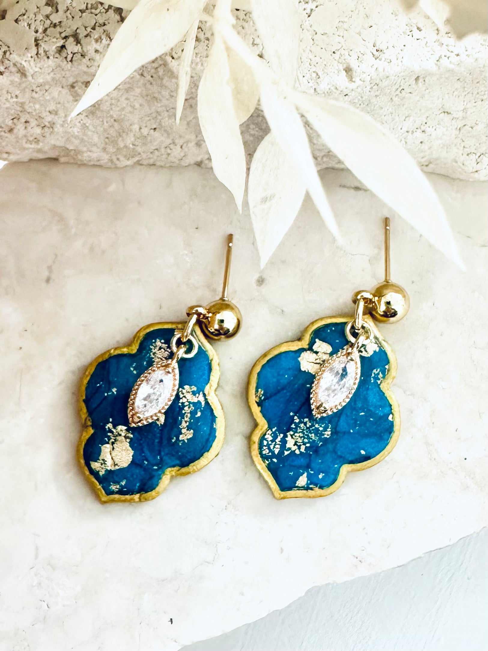 We love a versatile statement piece and Sirocco ticks all the boxes. Beautiful shades of bold and bright blue polymer clay with a gold hand-painted Moroccan inspired border and finished with a single jewel✨
