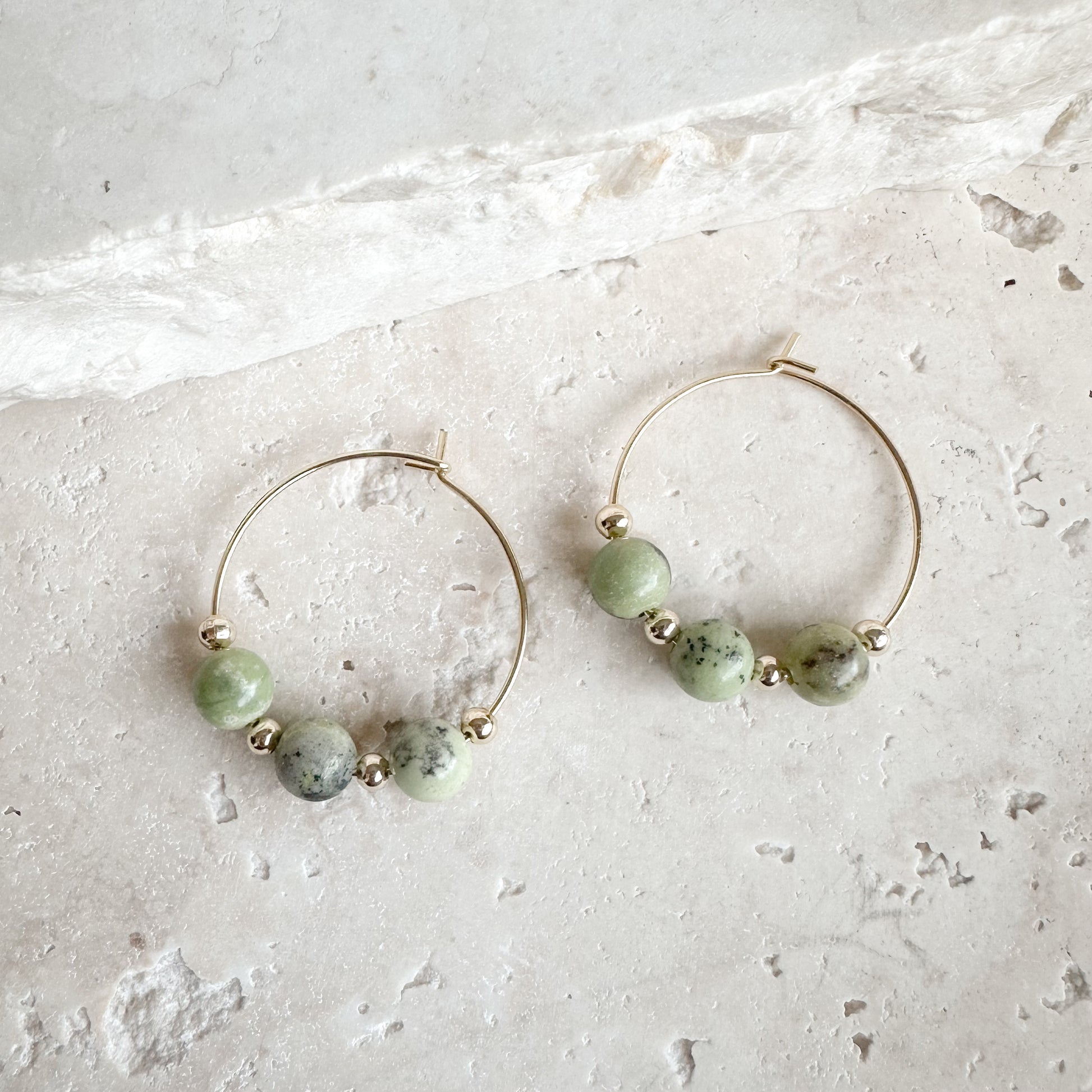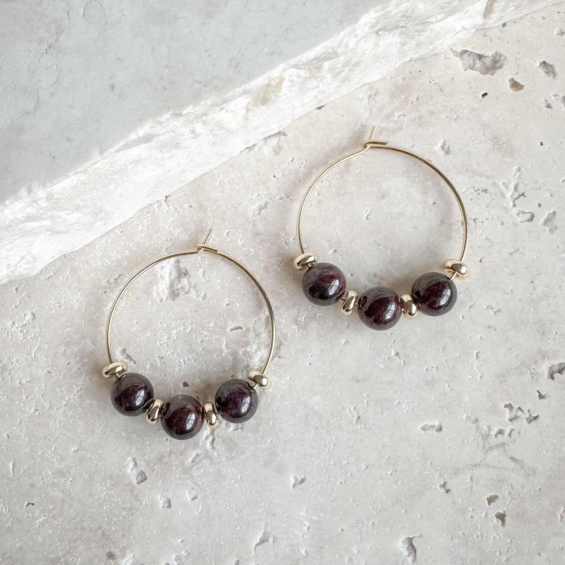 Featuring natural gemstone beads and subtle gold spacer detailing on a classic 22mm hoop, Vera offers a refined pop of colour while remaining beautifully minimal.